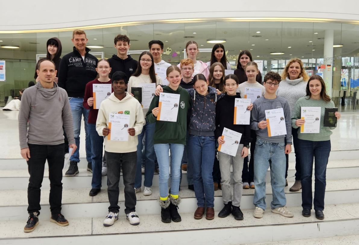 Am 29. August 2025 hat Herr Bauer 14 Schülerinnen aus den Jahrgangsstufen 10, EF und Q1 ihre von der University of Cambridge ausgestellten Sprachzertifikate überreicht und ihnen zu dieser besonderen Leistung gratuliert.